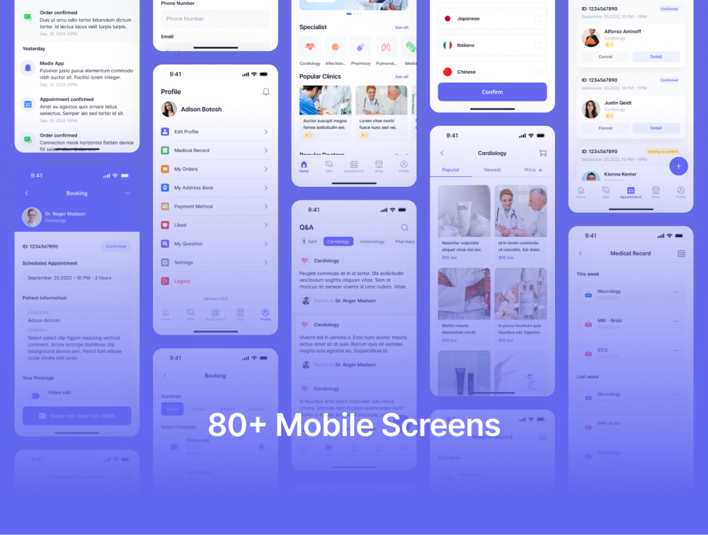 Medix – Healthcare and Medical Mobile App UI Kit, a comprehensive solution designed to enhance the user experience in the healthcare industry. This UI Kit is meticulously crafted to meet the specific needs of medical professionals, patients, and healthcare providers. With a clean and intuitive interface, it offers a seamless navigation experience, ensuring easy access to vital features such as appointment scheduling, medical records, and health monitoring. Elevate your healthcare app with our thoughtfully designed UI Kit, providing a modern, user-friendly, and visually appealing platform for all your medical application needs.